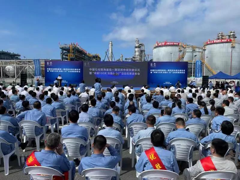 鎮海基地一期項目主要包括乙烯工程主體及產業鏈配套項目。從東海荒灘到煉塔林立,中國石化工程建設公司等55家參建單位近3萬名建設者安全高效施工,乙烯項目從2020年3月基礎設計批復、現場土建基礎開工到2021年6月底中交,僅用時15個月;按計劃2021年12月底引物料開車,目標用時僅21個月,將創國內同等規模項目建設速度之最,并且連續安全人工時超過4000萬,創同類大型工程建設項目安全佳績。