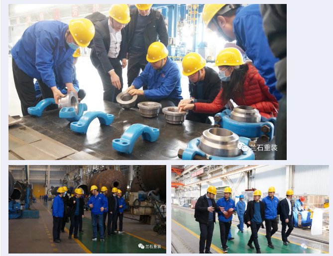 曹慶俊一行先后參觀了蘭石展館和蘭石重裝、蘭石植源、蘭石換熱生產車間,詳細了解了蘭石的發展歷程、生產經營情況和壓力容器裝備、板式換熱器裝備制造及EPC工程總包能力,并給予高度評價。