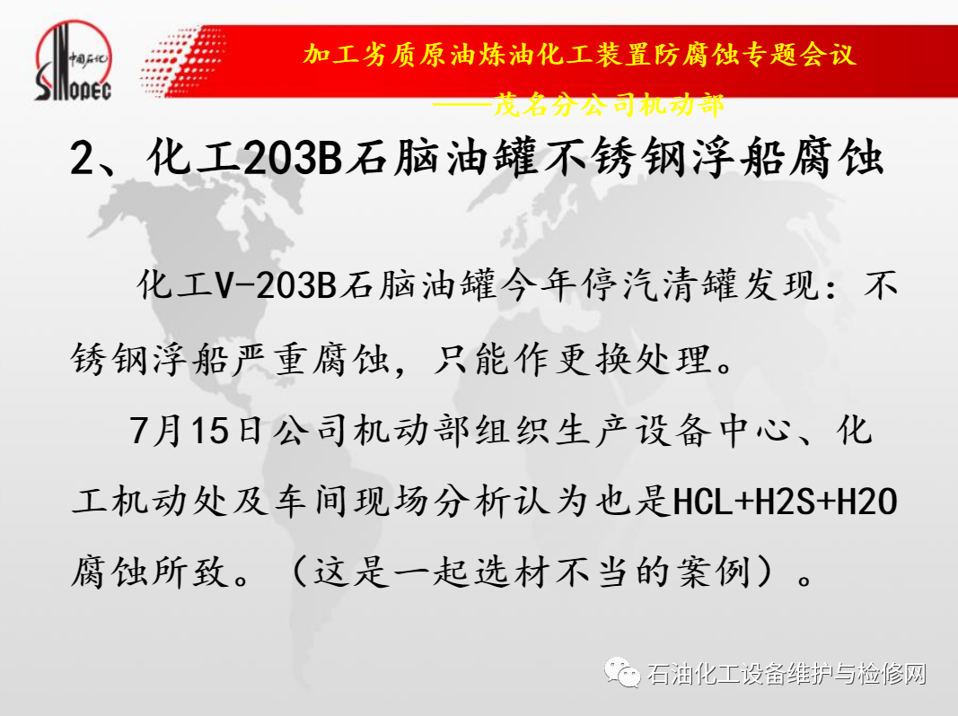 中石化茂名石化加工劣質原油煉油化工裝置防腐蝕.ppt