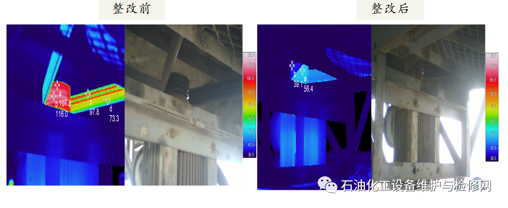 整改措施:檢修期間對防爆門處隔熱襯里進(jìn)行修復(fù),修復(fù)后溫度14℃。
