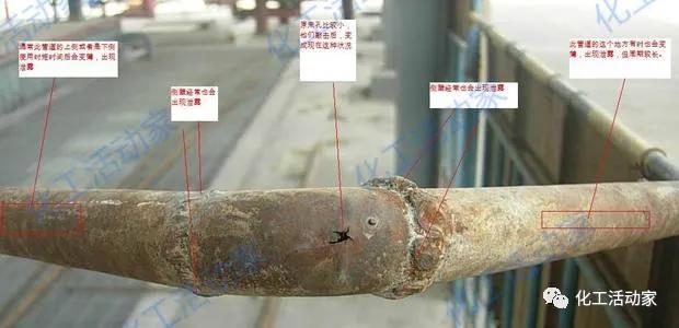 a) 材料組成:材質(zhì)等級(jí)偏低往往易導(dǎo)致腐蝕事故發(fā)生,在設(shè)計(jì)或者維修更換的過(guò)程中,對(duì)材料的選擇非常重要,尤其還要注意選材時(shí)不同材質(zhì)鋼材連接時(shí)的電偶腐蝕問(wèn)題。