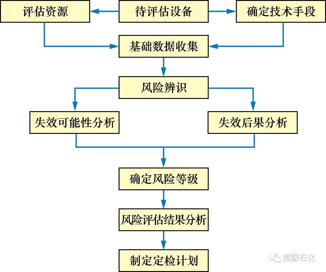 通過采用RBI技術,制定科學合理的定期檢驗計劃,可有效地預防高風險設備的失效[4]。整個RBI技術實施流程如圖1所示。